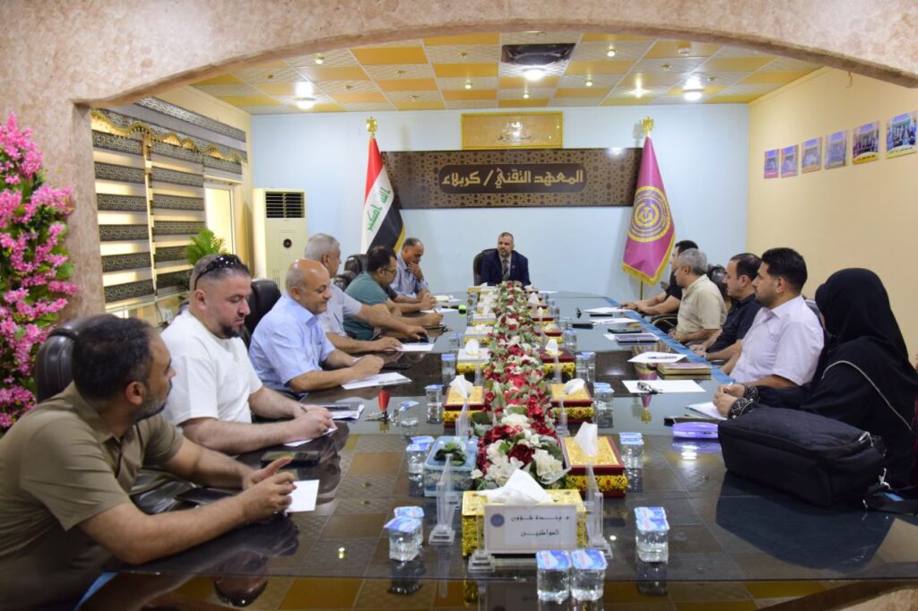 عقد عميد المعهد التقني كربلاء الأستاذ الدكتور فاضل محمد ظاهر اجتماعًا موسعًا مع رؤساء الأقسام العلمية، لمناقشة مخرجات القرار الوزاري القاضي بتحويل المعهد التقني كربلاء أحد تشكيلات جامعة الفرات الاوسط التقنية إلى كلية البوليتكنك – كربلاء ابتداءً من العام الدراسي 2025–2026.