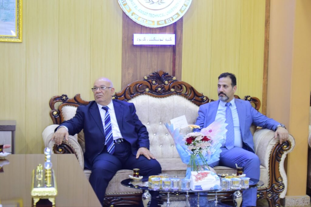 استقبل الأستاذ الدكتور فاضل محمد ظاهر عميد كلية البوليتكنك كربلاء، وفدًا من جامعة وارث الأنبياء برئاسة الأستاذ الدكتور عواد الخالدي عميد كلية الإدارة والاقتصاد، الذي قدّم التهاني والتبريكات إلى عمادة الكلية وكوادرها بمناسبة تحويل المعهد التقني كربلاء إلى كلية البوليتكنك كربلاء ضمن تشكيلات جامعة الفرات الأوسط التقنية.