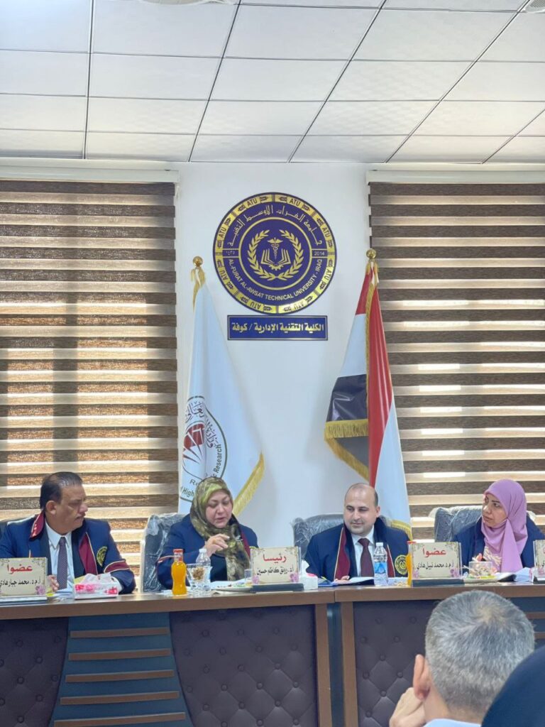 سعياً لتعزيز التكامل العلمي وتبادل الخبرات الأكاديمية بين مؤسسات التعليم العالي، شارك الأستاذ المساعد الدكتور محمد جبار هادي، رئيس قسم تقنيات إدارة الأعمال في كلية البوليتكنك كربلاء، عضواً في لجنة مناقشة رسالة ماجستير في الكلية التقنية الإدارية / كوفة بجامعة الفرات الأوسط التقنية.
