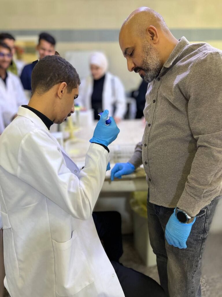 كما تم تقديم محاضرات نظرية وعملية حول آلية سحب الدم وإجراء الفحوصات الأساسية عليه، بما يشمل تحديد فصيلة الدم والفحص الشامل للدم (CBC).