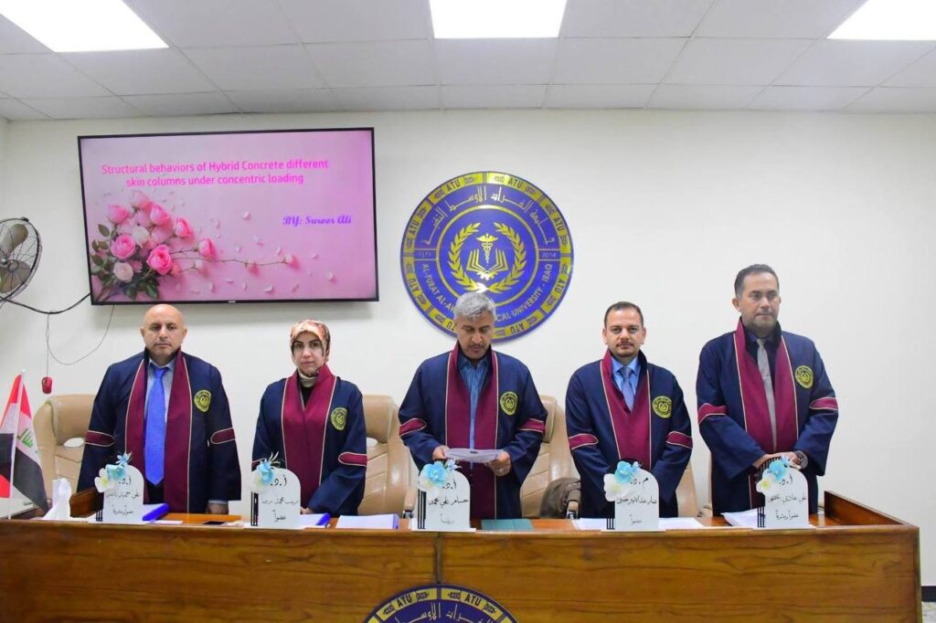 أشرف الأستاذ الدكتور علي هادي العبيدي، التدريسي في كلية البوليتكنك كربلاء، على رسالة ماجستير في الكلية التقنية المسيب التابعة لجامعة الفرات الأوسط التقنية، والتي تناولت دراسة السلوك الإنشائي للأعمدة الخرسانية المسلحة الهجينة ذات الأغلفة الخارجية المختلفة.